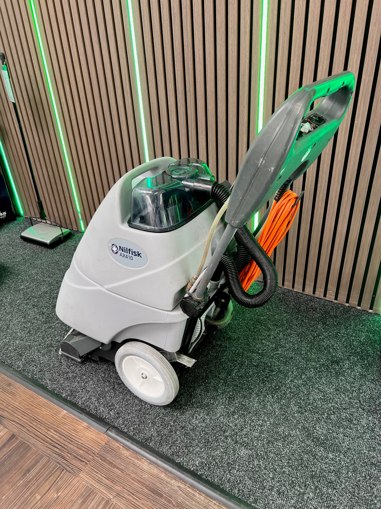 With the AX410 fast and effective dirt extraction from carpets is the name of the game. Thanks to the intelligent design and quality engineering that are the hallmarks of all Nilfisk machines, the AX 410 offers ready-to-go reliability and simple-to-use operation. The unit is designed to meet the demanding needs of cleaning mid-sized carpeted areas in offices, schools, airports, restaurants, hotels, stores and other heavy-traffic areas.
