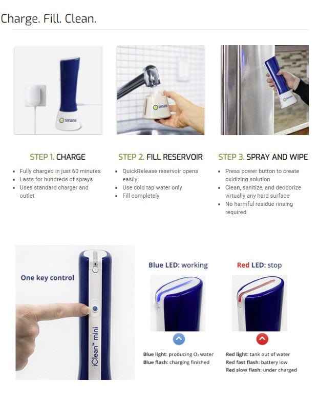 Simply fill with tap water, press the power button, and the iClean mini converts the water into a powerful oxidizer for on-demand cleaning anywhere, anytime.